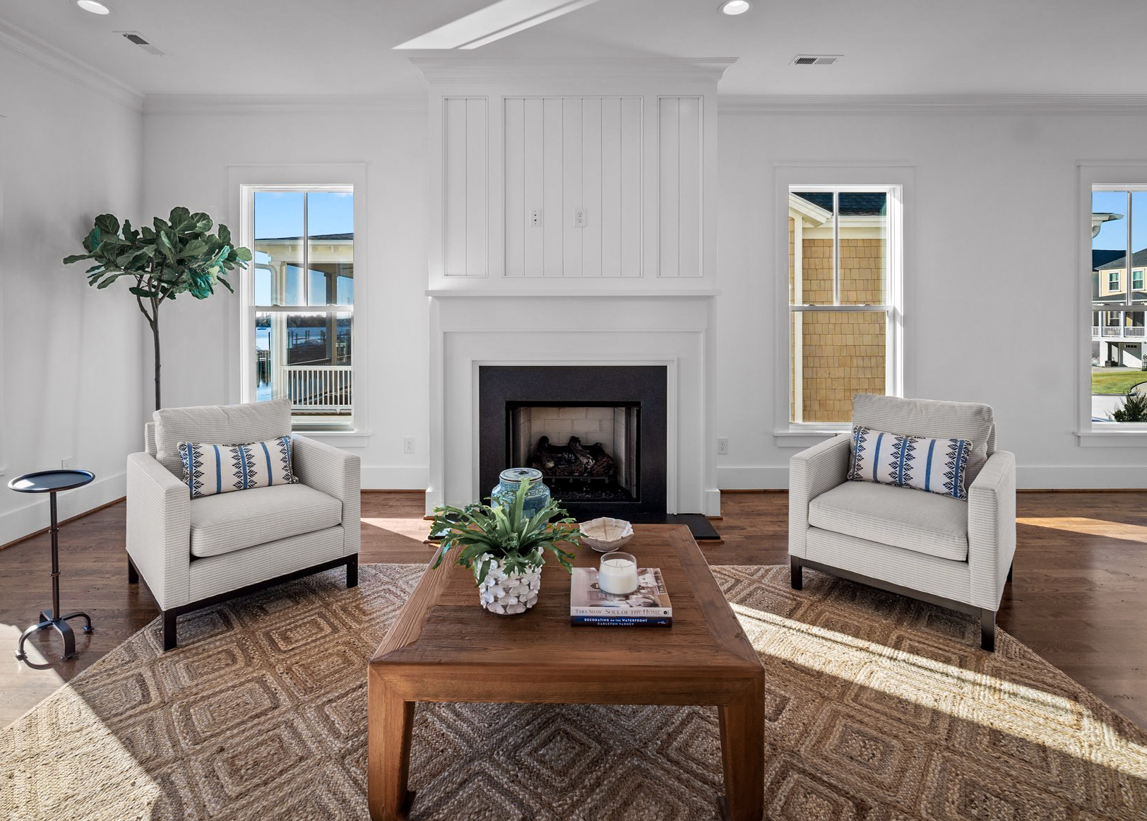 Welcome to The Tidewater – an exquisite 3 bed/2.5 bath single-family home that is sure to take your breath away! Located in charming Washington, NC, this stunning home features 4123 sq ft of indoor/outdoor living space with modern amenities and features that will make you feel right at home. The gourmet all-white kitchen has stainless steel appliances with soft brass hardware embellishments, while the site-finished hardwood flooring throughout the main level and hallways create a luxurious warmth. Enjoy open-concept living with views into the family room from the kitchen, which overlooks a dining area perfect for larger gatherings. You’ll love relaxing on your large waterfront porch or taking in picturesque water views from the many windows throughout this beautiful home. And don’t forget about the primary suite with an ensuite bath boasting even more incredible water views! With interior trim details adding charm to each room, The Tidewater awaits you!